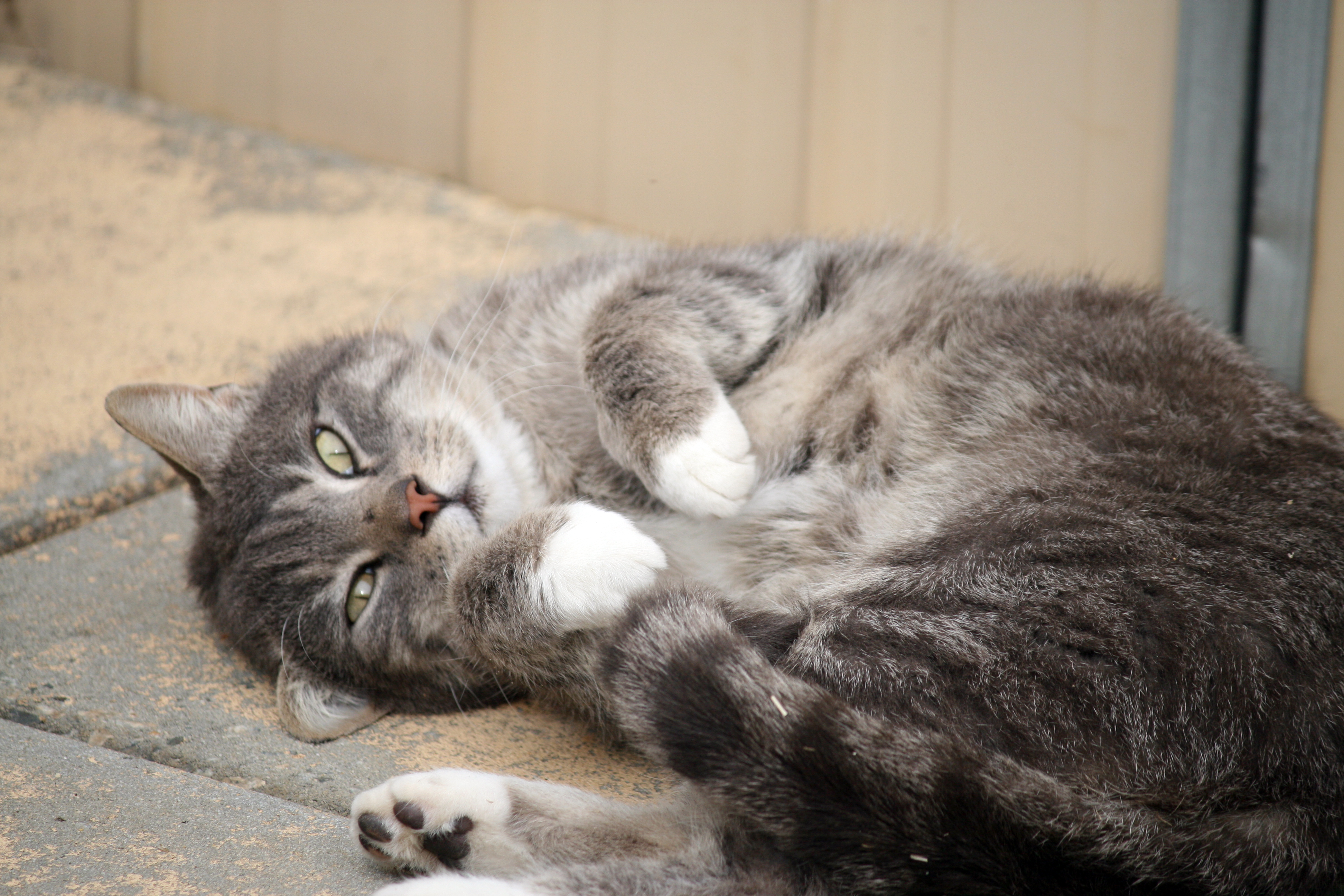 She obviously ‘belonged’ to someone – because she was well fed and in good condition. As additional confirmation that she was being fed: every couple of weeks I would pick her up to see if she had lost any weight. Supporting evidence was in the fact that every evening she would disappear around 6 pm and return about 30 minutes later. I assumed this was feeding time. Because of this, I deliberately made a point of not feeding her- as I knew that this would probably result in her taking up permanent residence -and I didn’t want to be responsible for ‘stealing’ another person’s cat.